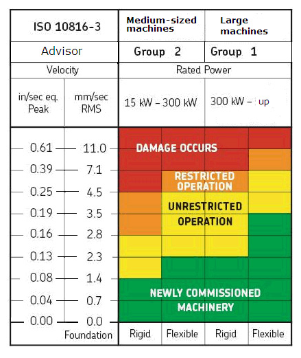 測量振動可能很簡單,例如,購買帶有手持加速度計的振動儀,然后將讀數與ISO-10816振動嚴重度表進行比較!振動計會將加速度計信號積分到以in / sec或mm / sec為單位的速度。然后可以決定機器是否需要平衡,對準或什至更換軸承。