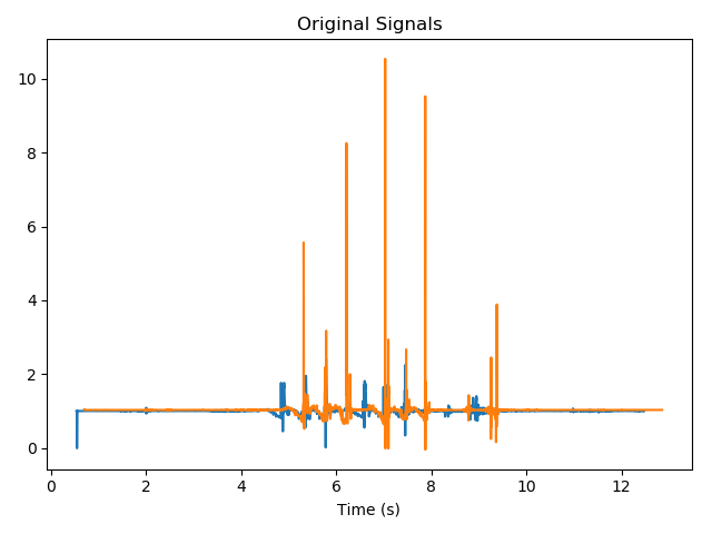 現在我們有兩個具有相同采樣率的信號,我們必須確定兩次記錄開始之間的時間偏移。這個問題可以被定義為尋找最佳信號一個偏移噸 ∈( - LEN(信號 1),LEN(信號 2))? ?由一些度量,其最好的同步重采樣信號。我們還允許用戶指定兩個信號之間的最大起始時間偏移,以防止由一個信號中的最后幾個采樣與另一個信號中的前幾個采樣很好地同步引起誤報的可能性。