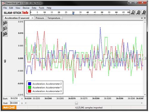 帶寬信息告訴用戶加速度計是否可以測量慢速或靜態加速度,并定義加速度計仍將保持精確的頻率上限。如果帶寬的較低范圍未達到0 Hz(稱為DC響應),則加速度計將無法像海洋環境中那樣測量靜態加速度,例如重力或緩慢振動(<2 Hz)。對于需要速度(通過積分加速度數據)或位移(兩次積分)的應用,也需要直流響應加速度計。沒有直流響應的加速度計將具有固有的衰減功能,這將在數值積分期間(尤其是在長時間事件中)導致重大誤差。簡單的諧波運動計算器以獲取更多信息- 注意:enDAQ是Mide的一部分。