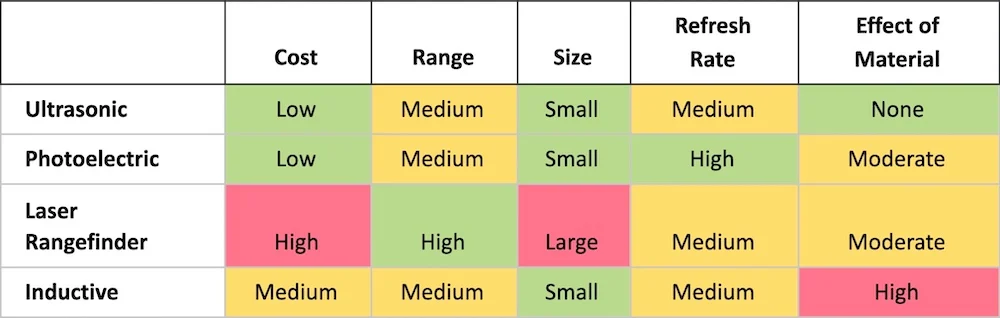 利用電磁波束而不是聲波,激光測距儀傳感器的工作原理與超聲波傳感器相似。雖然近年來這項技術在經濟上變得更加可行,但與超聲波和其他技術相比,它仍然是一個更昂貴的選擇。