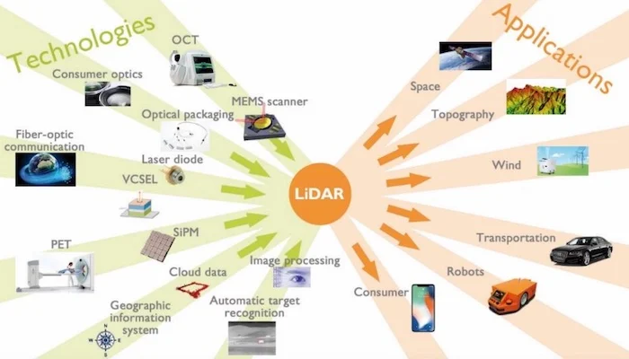 激光雷達技術和應用示例。圖片由 Yole Développement提供