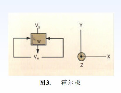 圖 3 中所示為導電材料的矩形薄板,沿Y軸施加了一個電壓VS,在板的霍垂直方向施加了一個磁場 B(沿 Z 軸),霍爾電壓VH由下式求得VH= uH(W/L)BVs 其中uH是霍爾遷移,W是霍爾板的寬度,L 是長度。 由于洛侖茲力作用在用導電材料制成的電荷載體上而產生的霍爾效應等于:F=q(vB) 其中 q 是電荷載體上的電荷,v 是電荷載體的速度,B 是磁場,力使電流變形,并將其擠向導電板的一側。這造成 X 軸上的等勢線變,形導致產生霍爾電壓。如果霍爾板的長度遠大于寬度,則霍爾電磁場與洛侖茲力相平衡。電流變成與 Y軸平行。最實用的半導體霍爾元件一般來說是正方形。此時電流相對于勵磁電壓有一個角度。