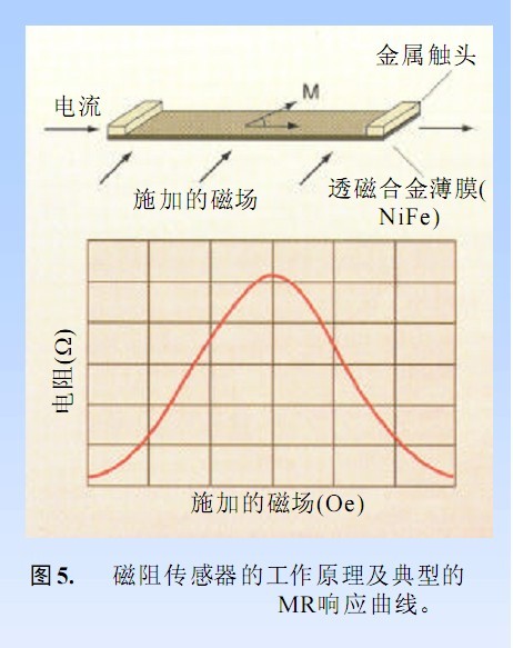 MR 傳感器(圖 7),為異態檢測提供高靈敏度和獨特的解決方案,可根據物體的磁性信號的特征支持對物體的識別。這些特性可應用于檢測如武器等的安全系統中,或用于在收費公路上對車輛進行檢測。它特別適用于貨幣鑒別,跟蹤系統,如在虛擬現實設備中,和固態電子定向羅盤中。與磁鐵組合也可用于齒輪傳感。MR 傳感器可傳感芯片平面內沿一個方向的磁場。這使其可與能傳感沿芯片平面法向磁場的霍爾效應裝置區別開來。這可使應用設計者以霍爾效應傳感器無法使用的幾何構型使用 MR 傳感器,例如當需要一個薄型傳感器時。需用一個或幾個MR傳感器的其它應用,包括機械手的位置和虛擬現實產品中盔的位置和定向。許多應用既可使用霍爾效應傳感器也可使用MR傳感器,但在需要低靈敏度,而較寬的線性范圍時,應使用霍爾效應傳感器;在要求高靈敏度時,則使用 MR 傳感器 。
