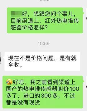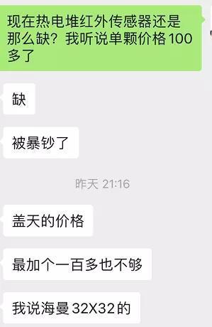 “太瘋狂了,價格一路飆!庇须娮尤θ耸扛锌,從年初到現(xiàn)在,紅外熱電堆傳感器成為“網(wǎng)紅”,價格節(jié)節(jié)攀高,但現(xiàn)貨奇缺。