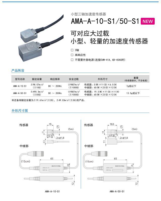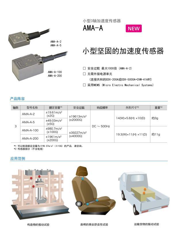 日本kyowa AMA-A適用于較大過(guò)載的小型輕量的加速度傳感器.