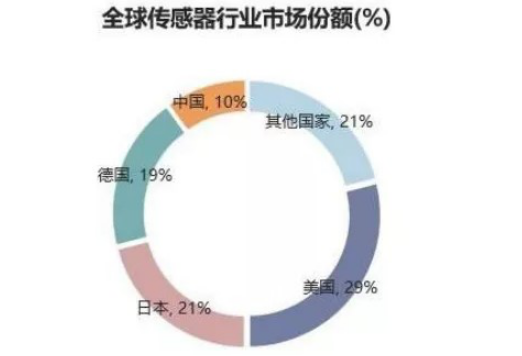 從2018年的全球傳感器行業市場份額調查數據中可以得知,美國、日本、德國占據全球傳感器市場七成份額,而我國僅占到10%左右。由此可見,我國的市場占額與某些發達國家相比還有很大的差距。