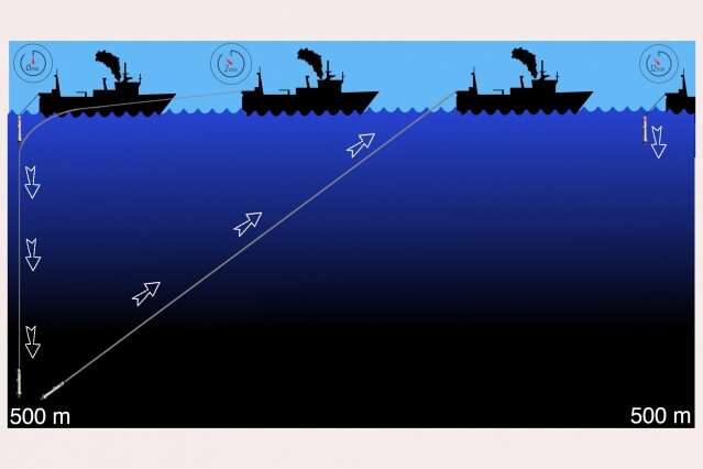 最后,整個(gè)儀器都裝在一個(gè)鋁管中,設(shè)計(jì)成可通過一條長(zhǎng)線連接到船尾的絞盤上。隨著船舶的移動(dòng),團(tuán)隊(duì)可以將儀器掉落到舷外,并使用絞車以即使儀器移開時(shí)儀器也能直接下降的速度來支付管線費(fèi)用。大約兩分鐘后,一旦到達(dá)約500米的深度,團(tuán)隊(duì)便搖動(dòng)絞盤將儀器拉回原位,以使儀器在12分鐘內(nèi)趕上船。然后機(jī)組人員可以再次放下儀器,這次離他們的最后一個(gè)放下點(diǎn)一定距離。