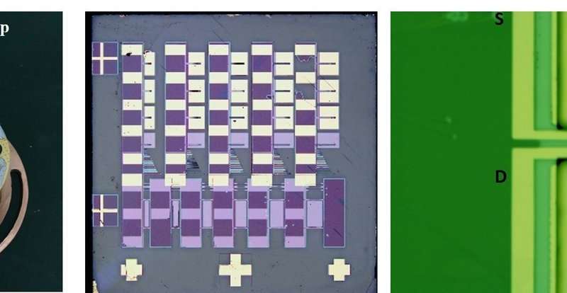 通過(guò)這項(xiàng)研究開發(fā)的金剛石MEMS芯片的顯微照片以及集成到芯片中的金剛石懸臂之一
