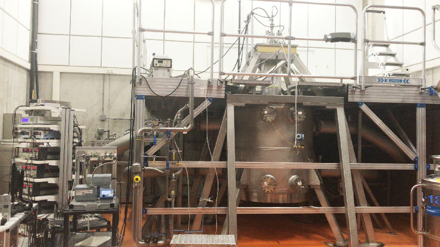 圖片:Paragraf – 圖像顯示(右側)用于測試 GHS-C 的 37 T 磁鐵,其中插入了低溫恒溫器和可變溫度以及測量電子設備和氣體處理系統(左側)