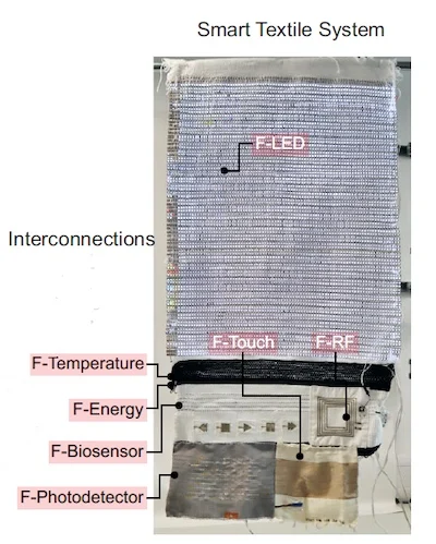 該研究使用對稱和非對稱編織圖案將六個輸入光纖設備集成到紡織品中,以實現包括觸摸感應、無線電力傳輸和環境監測在內的多種功能。