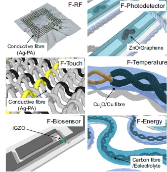 智能紡織系統中的典型傳感器包括光電探測器和生物傳感器。圖片由Nature提供