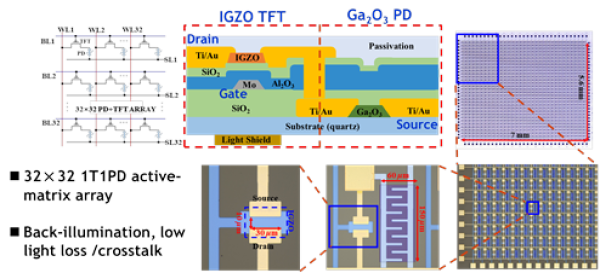 相關(guān)研究成果(First Demonstration of High-Sensitivity (NEP<1fW·Hz-1/2) Back-Illuminated Active-Matrix Deep UV Image Sensor by Monolithic Integration of Ga2O3 Photodetectors and Oxide Thin-Film-Transistors)入選2022 VLSI。