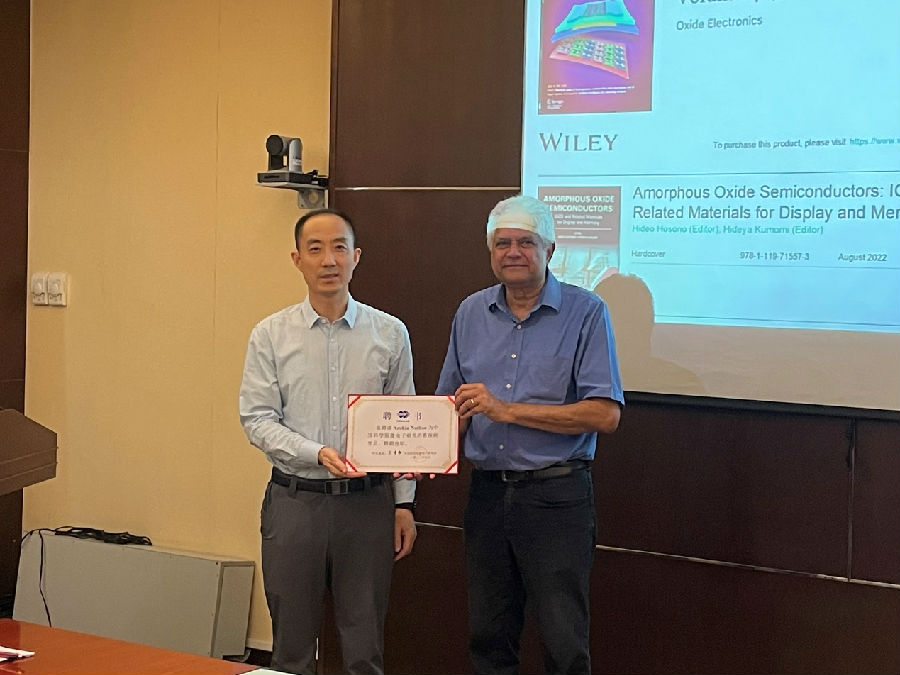 會(huì)上,人事處處長王雷向Arokia Nathan教授頒發(fā)了“中國科學(xué)院微電子研究所客座研究員”證書。