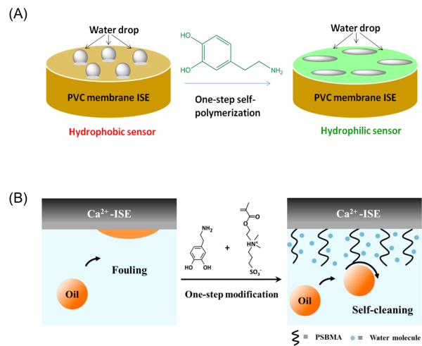 圖1.基于兩性離子聚合物修飾的自清潔防油污聚合物敏感膜電位型傳感器