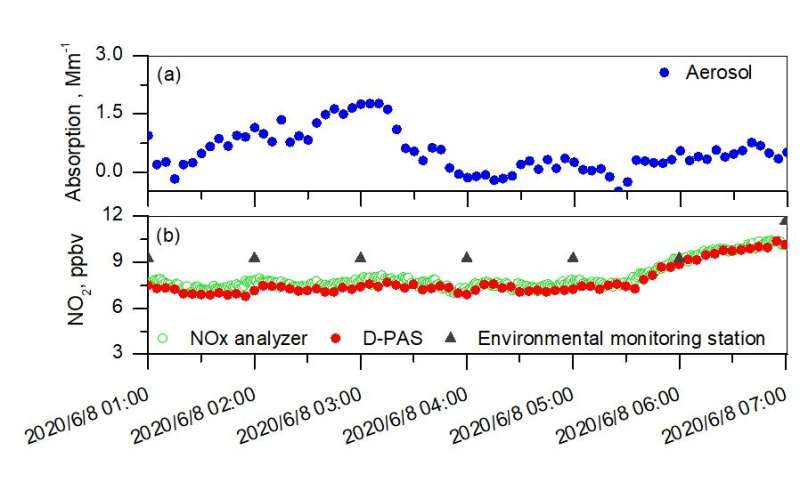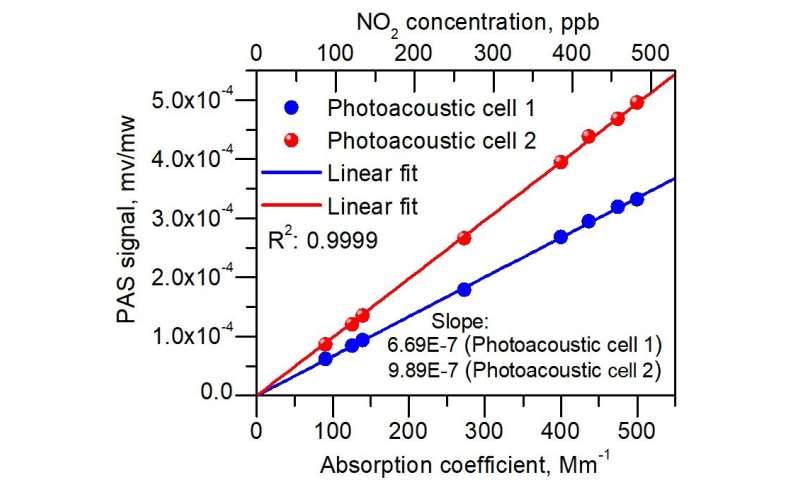 在實(shí)驗(yàn)過(guò)程中,開(kāi)發(fā)的D-PAS分析儀與商用NOX分析儀在測(cè)量NO時(shí)的相互比較和一致性2在大氣中證明了這種新型D-PAS傳感器的可靠性。