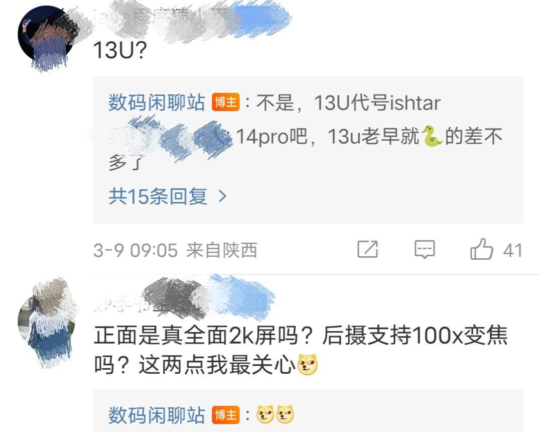 該博主對此回應了兩個狗頭表情,或意為有可能是真2K屏和100x變焦。