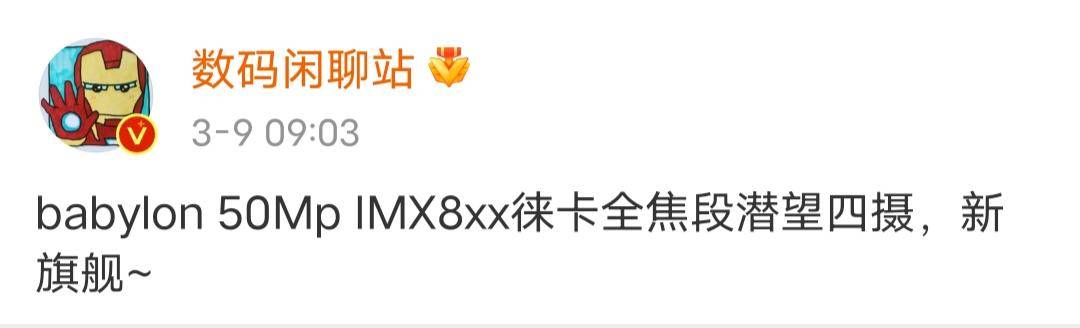 今日,博主@數碼閑聊站爆料“babylon 50Mp IMX8xx徠卡全焦段潛望四攝,新旗艦~”該博主后來將該條爆料信息改為了“早”。根據評論區可知,該博主爆料中所提到的機型或為小米14 Pro,意為小米14 Pro的后置主攝或為5000萬像素,搭載索尼IMX8xx大底傳感器,擁有徠卡全焦段潛望四攝。