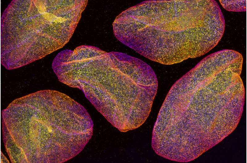 熒光標(biāo)記的細(xì)胞核,用共聚焦顯微鏡成像。圖像尺寸約為0.03 mm × 0.02 mm。圖片來源:Teemu Ihalainen