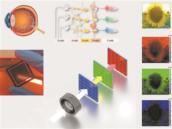 美國賓夕法尼亞州立大學科學家從大自然中汲取靈感,開發出一種新設備,可通過模仿人眼中的紅、綠、藍光感受器和神經網絡來生成圖像。他們用模仿人類視錐細胞的窄帶鈣鈦礦光電探測器創建了一個新的傳感器陣列,并將其連接到模仿人類神經網絡的神經形態算法,以處理信息并生成高保真圖像。研究發表在最新一期《科學進展》上。