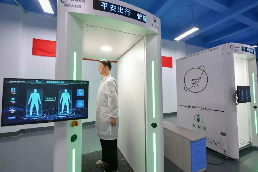 圖| 安徽中科太赫茲科技有限公司工作人員在采集主動式太赫茲人體安檢設備的成像數據