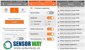 Piper真正的亮點(diǎn)在于它內(nèi)置了豐富的傳感器,同時(shí)還擁有非常易用的應(yīng)用程序。應(yīng)用支持iOS和Android平臺(tái),界面十分直觀,幾乎不需要任何學(xué)習(xí)曲線,主界面擁有幾種直觀的模式,可以實(shí)現(xiàn)豐富的監(jiān)控功能。另外,你還可以設(shè)置不同的監(jiān)控規(guī)則,比如噪音監(jiān)測(cè)模式或是運(yùn)動(dòng)監(jiān)測(cè)模式,可用性相當(dāng)豐富。