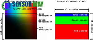 簡單來說,這項技術有點像適馬Foveon X3傳感器的衍生版本。Foveon X3是將藍、綠、紅三色層按照波長自上而下排列,TFD同樣也利用了不同波長(色彩)光線在硅材料里的傳播特性。但不同的地方在于,TFD用硅材料替換掉了原先的標準RGB陣列,并把不同深度的色彩數據,分多層記錄下來。