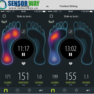 真正神奇的地方在于智能手機(jī)的app。應(yīng)用通過(guò)顯示詳細(xì)的熱圖告訴你雙腳的受壓點(diǎn),應(yīng)用還顯示雙腳著地持續(xù)的時(shí)間、跑步節(jié)奏、步數(shù)、步幅和速度的詳細(xì)信息。