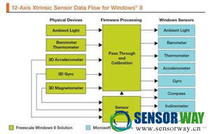 圖3面向Windows 8的12軸Xtrinsic傳感器數(shù)據(jù)流
