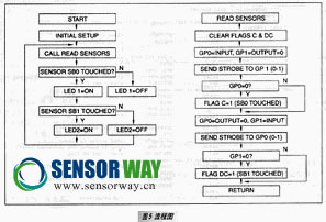 假若讀操作的結(jié)果是"0",這意味著傳感器被按。為手指電容串聯(lián)連接到電容器C,使電路的時間常數(shù)較大。